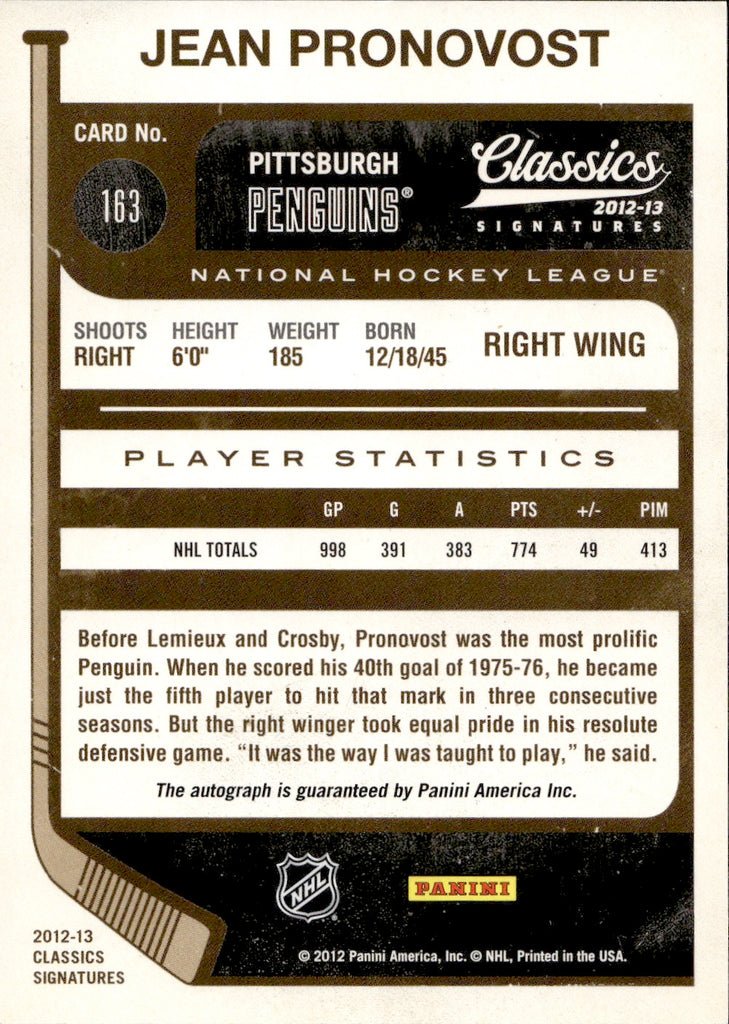 2012-13 Jean Pronovost Panini Classics Signatures AUTOGRAPH AUTO #163 Pittsburgh Penguins
