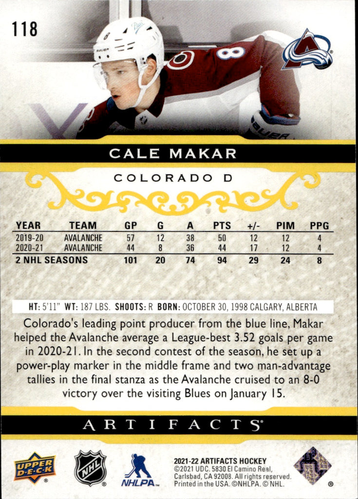 2021-22 Cale Makar Upper Deck Artifacts GOLD 22/50 #118 Colorado Avalanche