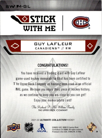 2021-22 Guy LaFleur Upper Deck Ultimate STICK WITH ME STICK 34/35 RELIC #SWM-GL Montreal Canadiens HOF