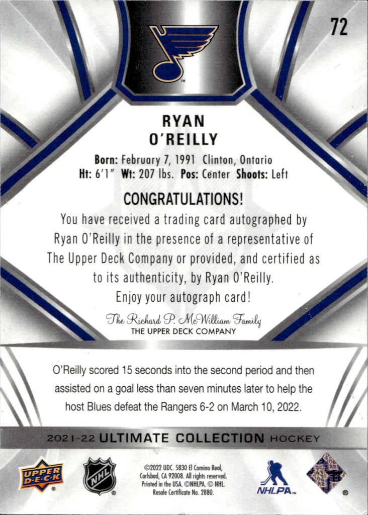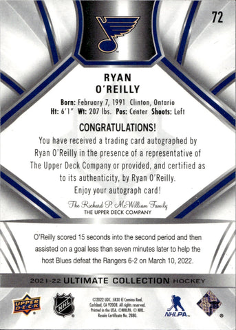 2021-22 Ryan O'Reilly Upper Deck Ultimate AUTO AUTOGRAPH #72 St. Louis Blues