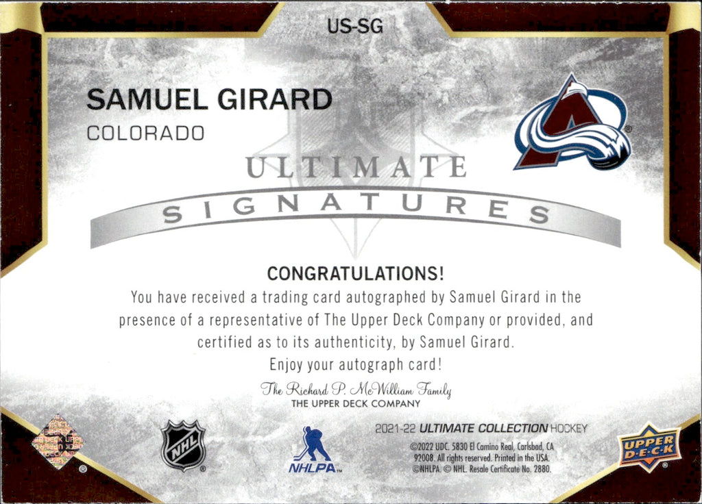 2021-22 Samuel Girard Upper Deck Ultimate SIGNATURES AUTOGRAPH AUTO #US-SG Colorado Avalanche
