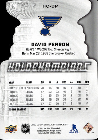2022-23 David Perron Upper Deck SPx HOLOCHAMPIONS 288/299 St. Louis Blues #HC-DP