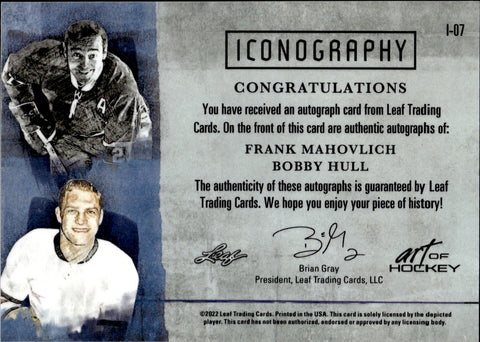 2022 Bobby Hull Frank Mahovlich Leaf Iconography DUAL AUTO 11/20 AUTOGRAPH #I-07 Blackhawks Maple Leafs HOF