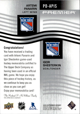 2023-24 Artemi Panarin Igor Shersterkin Upper Deck Premier DUAL JERSEY 69/99 RELIC #PD-APIS New York Rangers