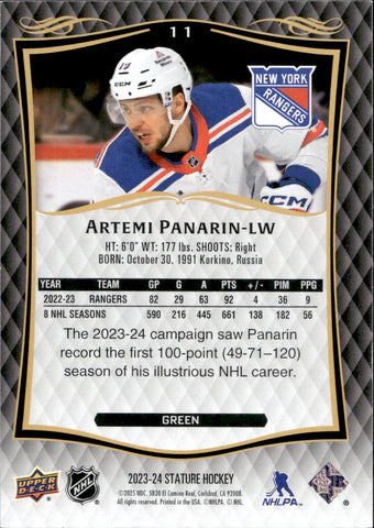 2023-24 Artemi Panarin Upper Deck Stature GREEN 248/375 #11 New York Rangers