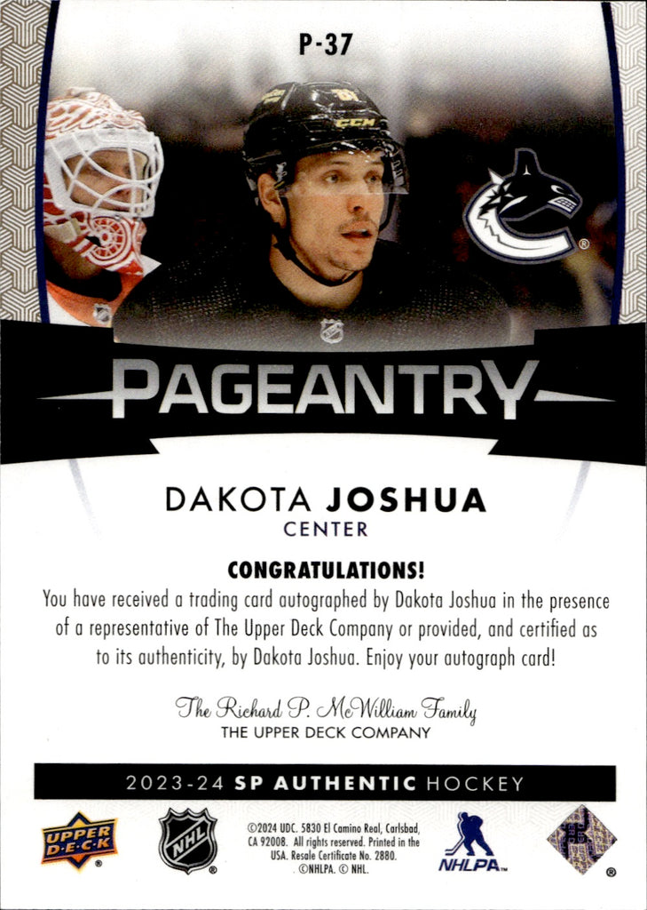 2023-24 Dakota Joshua Upper Deck Sp Authentic PAGEANTRY AUTO Vancouver Canucks #P-37