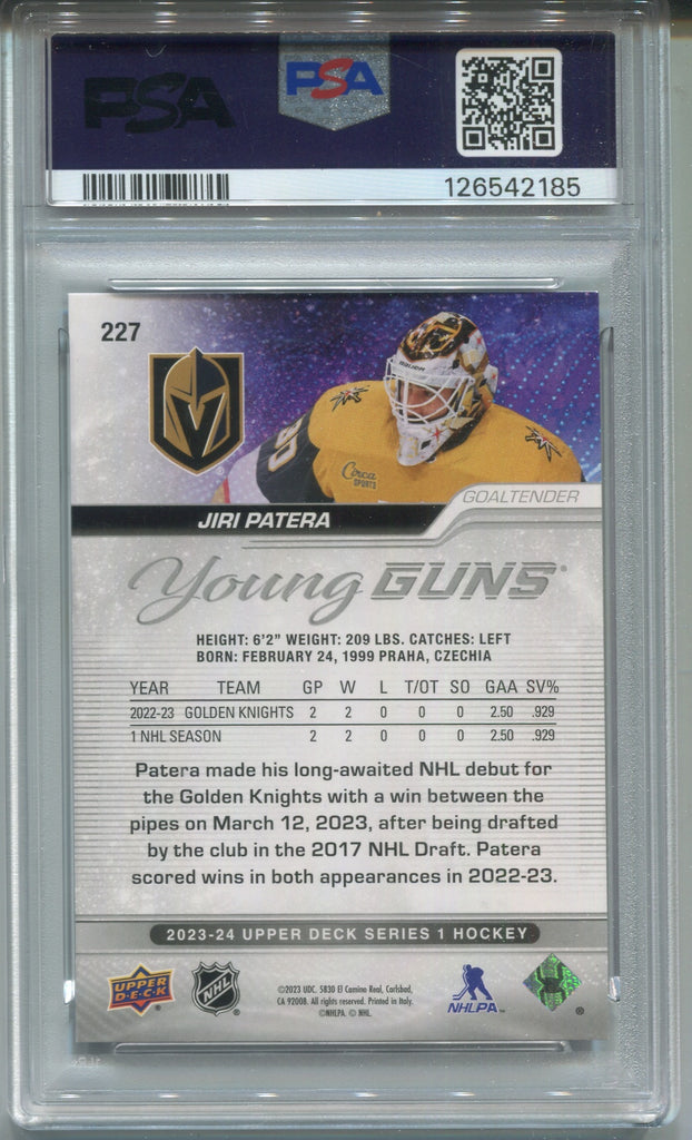 2023-24 Jiri Patera Upper Deck Series 1 YOUNG GUNS ROOKIE RC PSA 9 #227 Las Vegas Golden Knights 2185