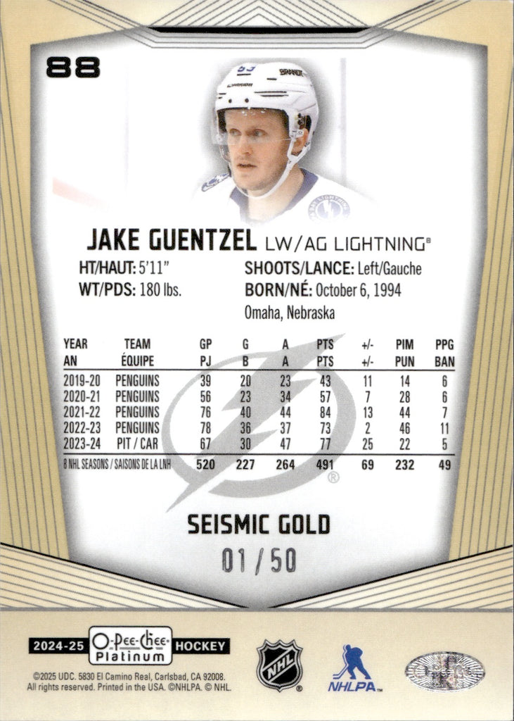 2024-25 Jake Guentzel Upper Deck O-PEE-CHEE PLATINUM SEISMIC GOLD 1/50 #88 Tampa Bay Lightning