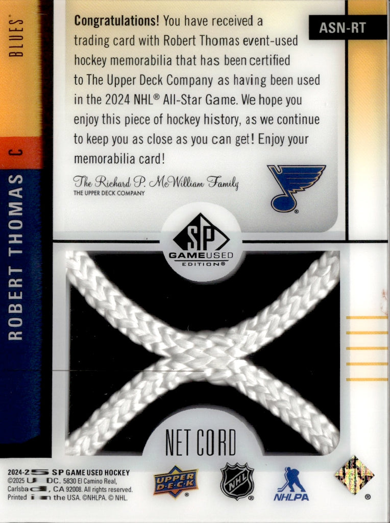 2024-25 Robert Thomas Upper Deck SP Game Used ALL-STAR GAME NET CORD 11/35 RELIC #ASN-RT St. Louis Blues