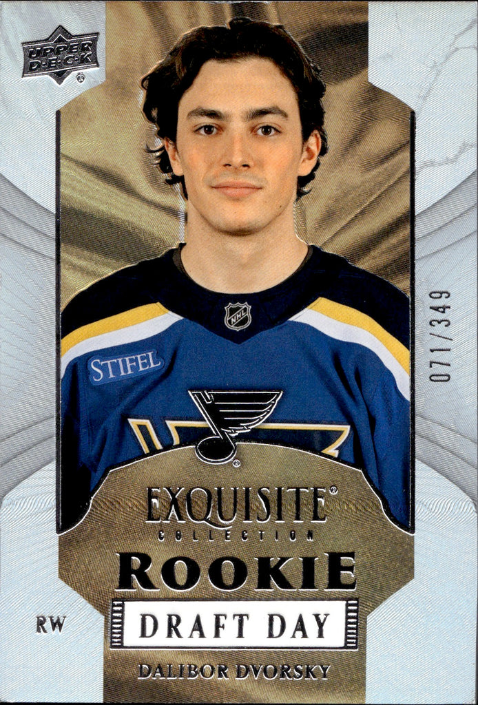 2025-26 Dalibor Dvorsky Upper Deck Exquisite ROOKIE DRAFT DAY 071/349 RC #RDD-DD St. Louis Blues