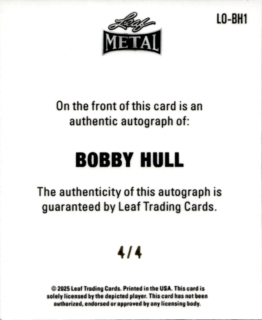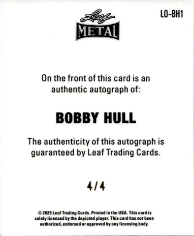 2025 Bobby Hull Leaf Metal Legends LEAF ORIGINALS 1948 BLUE PRISMATIC AUTO 4/4 AUTOGRAPH #LO-BH1 Chicago Blackhawks