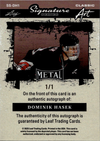 2025 Dominik Hasek Leaf Metal Signature Series CLASSIC ART AUTO 1/1 ONE OF ONE AUTOGRAPH #SS-DH1 Buffalo Sabres HOF