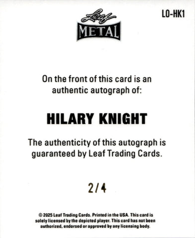 2025 Hilary Knight Leaf Metal Legends LEAF ORIGINALS 1948 BLUE SHIMMER AUTO 2/4 AUTOGRAPH #LO-HK1 Seattle Torrent