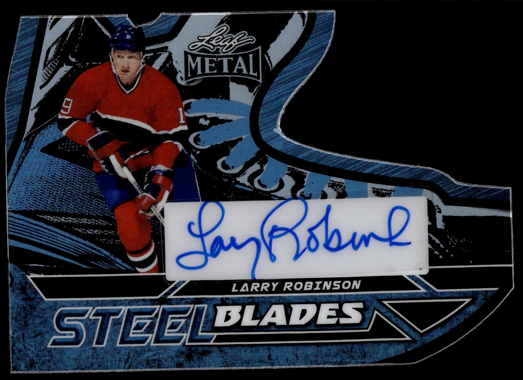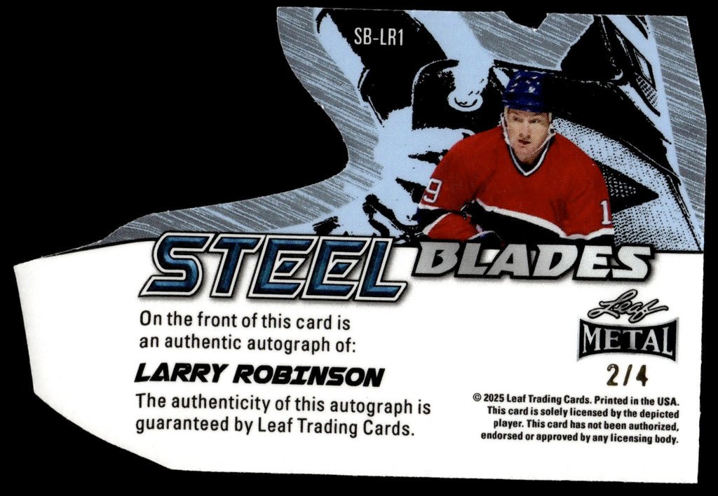 2025 Larry Robinson Leaf Metal PLATINUM BLUE PRIZMATIC STEEL BLADES AUTO 2/4 AUTOGRAPH #SB-LR1 Montreal Canadians