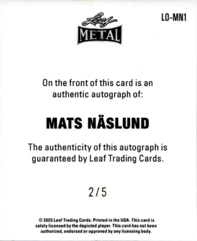 2025 Mats Naslund Leaf Metal Legends LEAF ORIGINALS 1948 PINK PRISMATIC AUTO 2/5 AUTOGRAPH #LO-MN1 Montreal Canadiens
