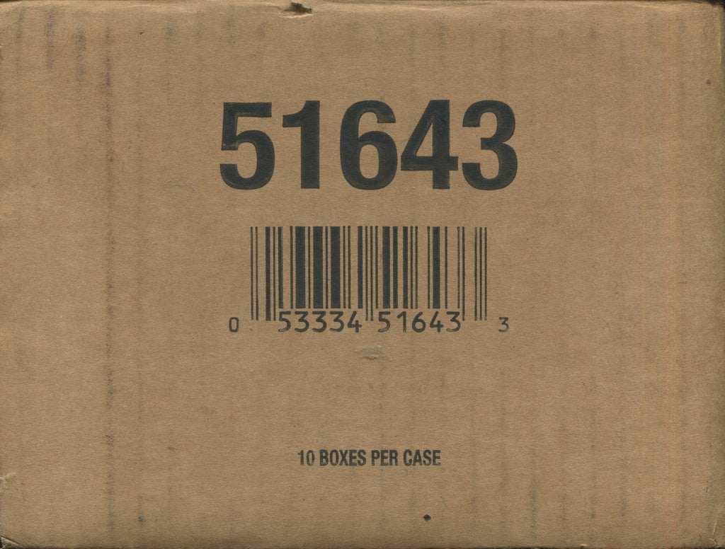 Configuration: 10 Boxes per case. 1 pack per box. 6 cards per pack.