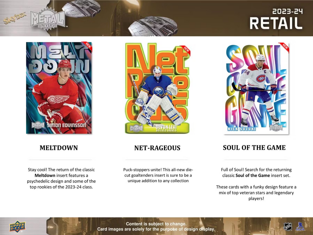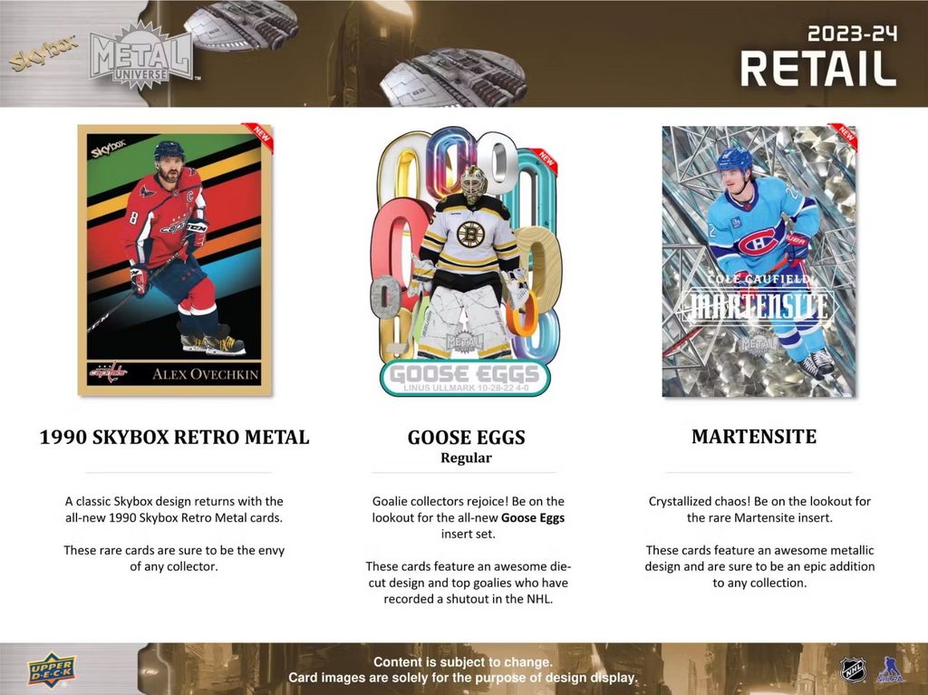 - All-new inserts! The 2023-24 edition of Skybox Metal Universe Hockey is loaded with new content!