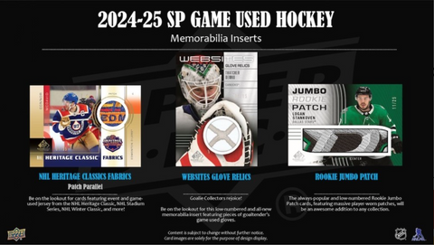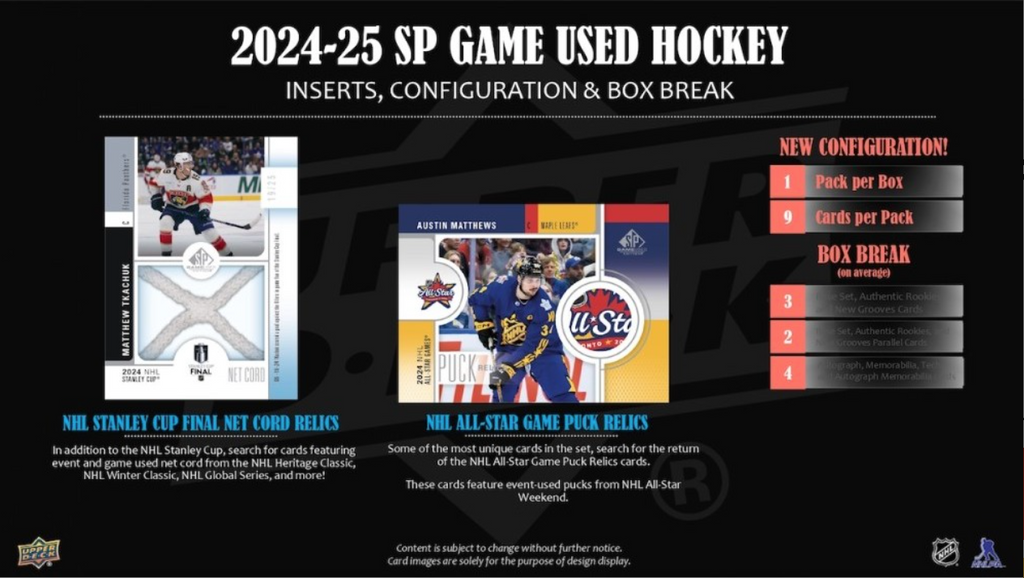 - 2024-25 SP Game Used Hockey also hosts exciting new insert sets including Websites Glove Relics and Visible Spectrum!Box Brk: