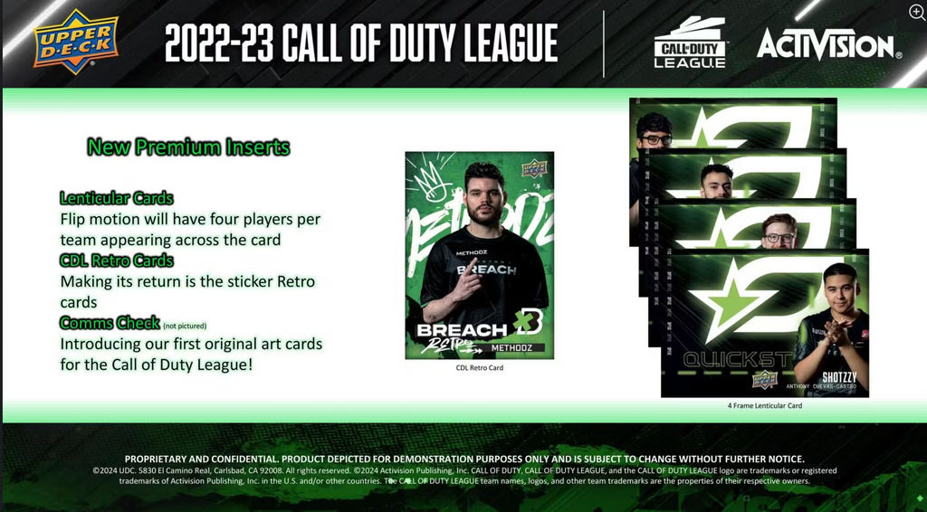 - 2022-23 Call of Duty League set features the 2023 starting rosters with highlights and moments from 2022, including the first year of Boston Breach and OpTic Texas!