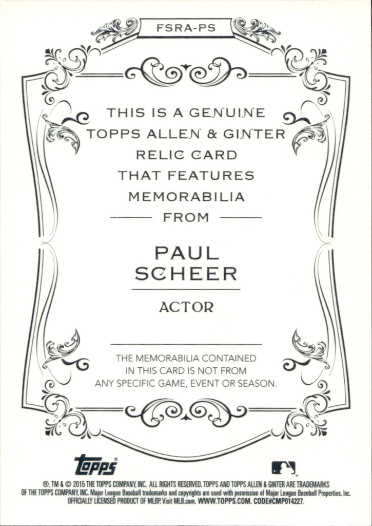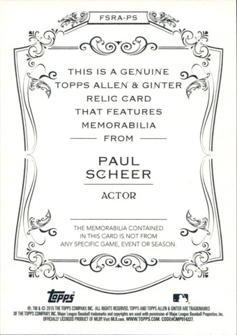 2015 Paul Scheer Topps Allen & Ginter SHIRT RELIC #FSRA-PS The League