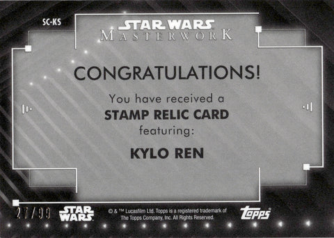 2020 Kylo Ren Sith Trooper Topps Masterwork STAMPS GREEN 27/99 #SC-KS