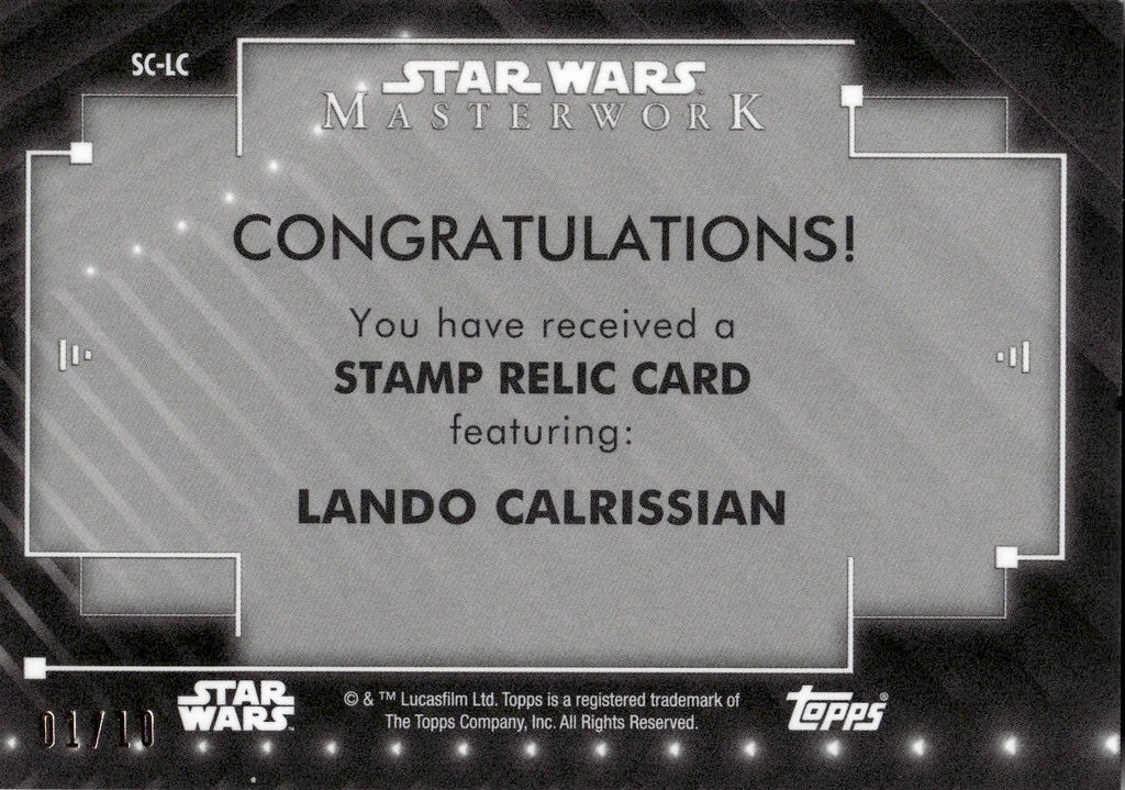 2020 Lando Calrissian Topps Masterwork STAMPS ORANGE 1/10 #SC-LC