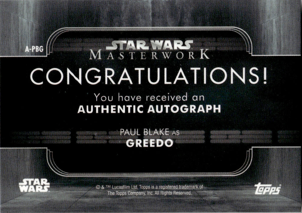 2020 Paul Blake as Greedo Topps Masterwork AUTO #A-PBG 2