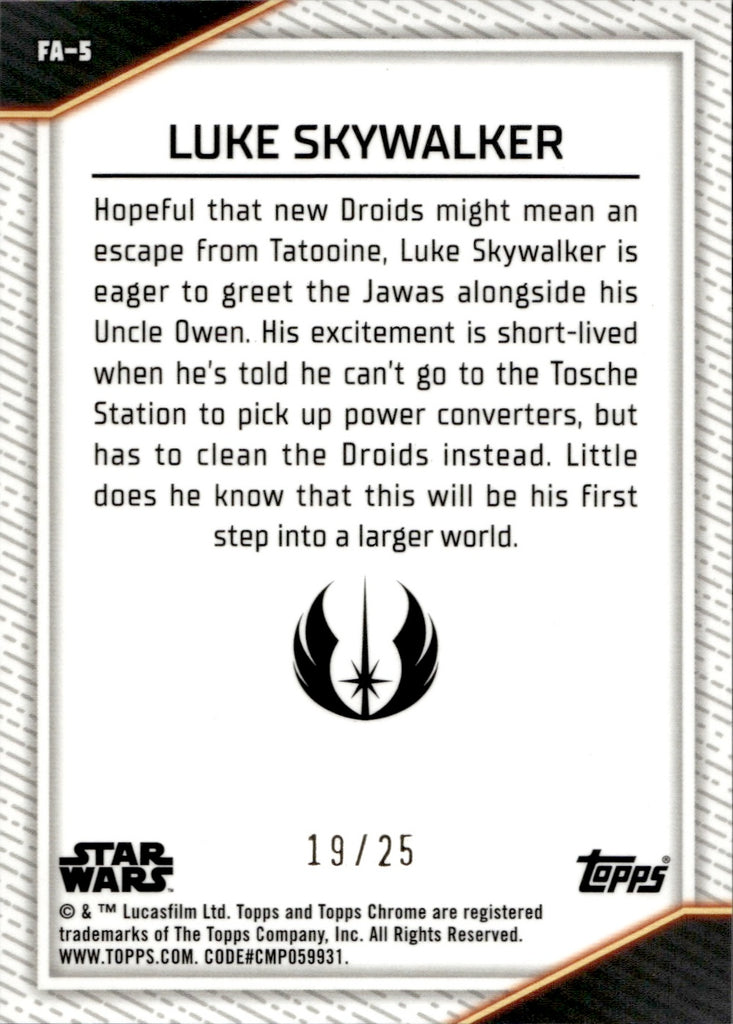 2023 Luke Skywalker Topps Chrome Star Wars ORANGE REFRACTOR FIRST APPEARANCES 19/25 #FA-5 Jedi