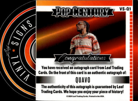 2024 Quavo Leaf Pop Century VINYL SIGNS AUTO 4/6 #VS-Q1