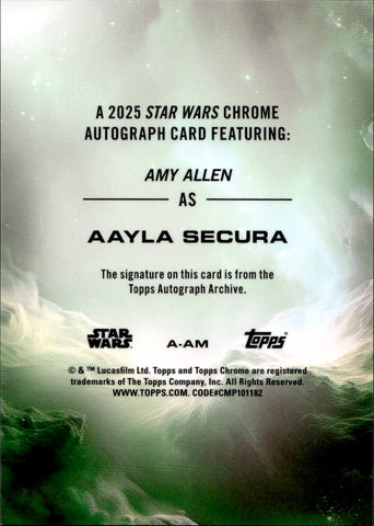2025 Amy Allen as Aayla Secura Topps Chrome Star Wars REFRACTOR AUTO AUTOGRAPH #A-AM Attack of the Clones