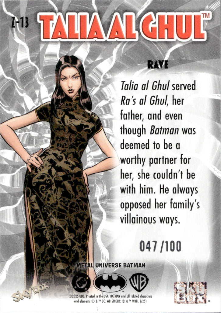 2025 Talia Al Ghul Skybox Metal Universe Batman Z-FORCE 47/100 #Z-13