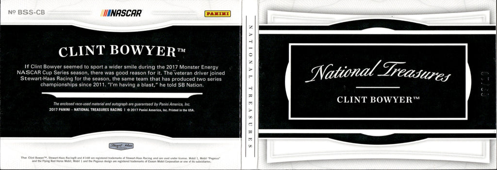 2017 Clint Bowyer Panini National Treasures NASCAR 6 PIECE RELIC AUTO 09/10 AUTOGRAPH BOOKLET #BSS-CB Mobil 1