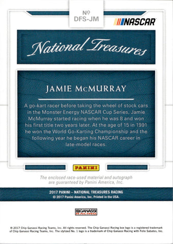 2017 Jamie McMurray Panini National Treasures NASCAR EMERALD GREEN DUAL FIRE SUIT AUTO 3/5 AUTOGRAPH RELIC #DFS-JM McDonald's