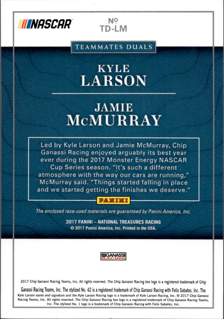 2017 Kyle Larson Jamie McMurray Panini National Treasures DUAL FIRE SUIT 03/10 RELIC #TD-LM Target