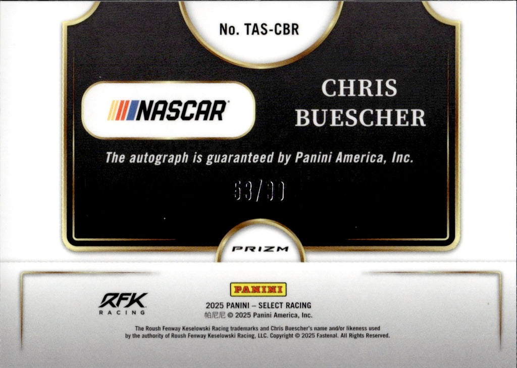 2025 Chris Buescher Panini Select BLUE TRACKSIDE ACTION AUTO 53/99 AUTOGRAPH #TAS-CBR Fastenal