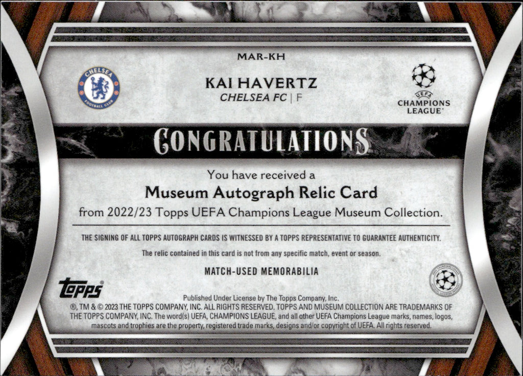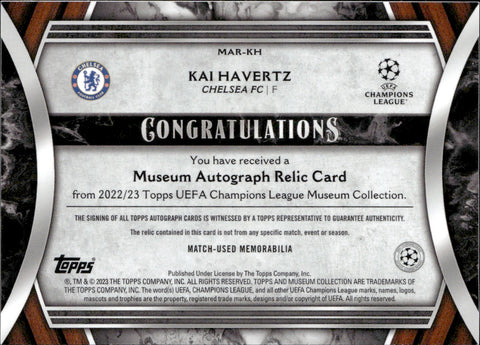 2022-23 Kai Havertz Topps UEFA Champions League Museum Collection AUTOGRAPH RELIC JERSEY 36/75 AUTO #MAR-KH FC Chelsea FC