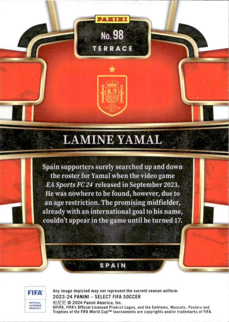 2023-24 Lamine Yamal Panini Select FIFA TERRACE ROOKIE RC #98 Spain