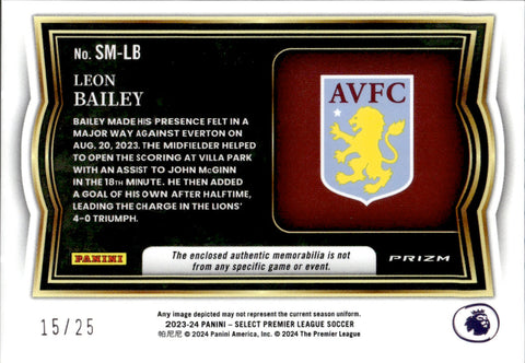 2023-24 Leon Bailey Panini Select PREMIER LEAGUE MATERIALS TIE-DYE PRIZM 15/25 JERSEY #SM-LB Aston Villa FC