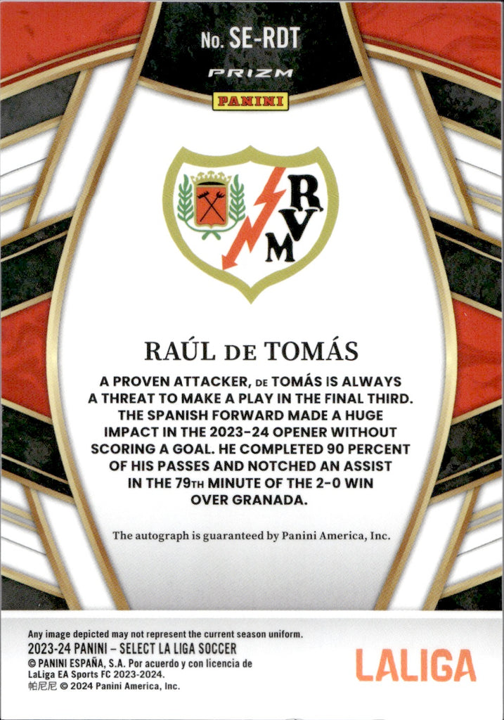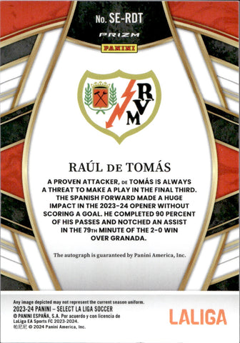 2023-24 Raul De Tomas Panini Select LA LIGA SIGNATURES PRIZM AUTOGRAPH AUTO #SE-RDT Rayo Vallecano