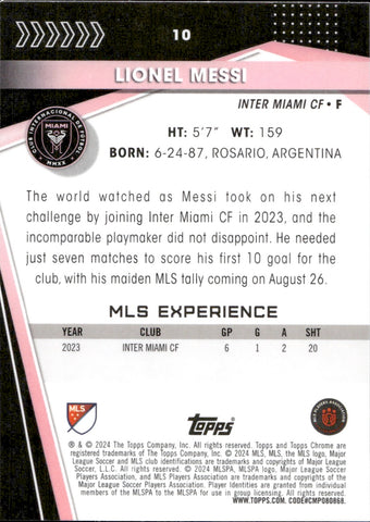 2024 Lionel Messi Topps Chrome MLS PURPLE REFRACTOR 44/199 #10 Inter Miami CF