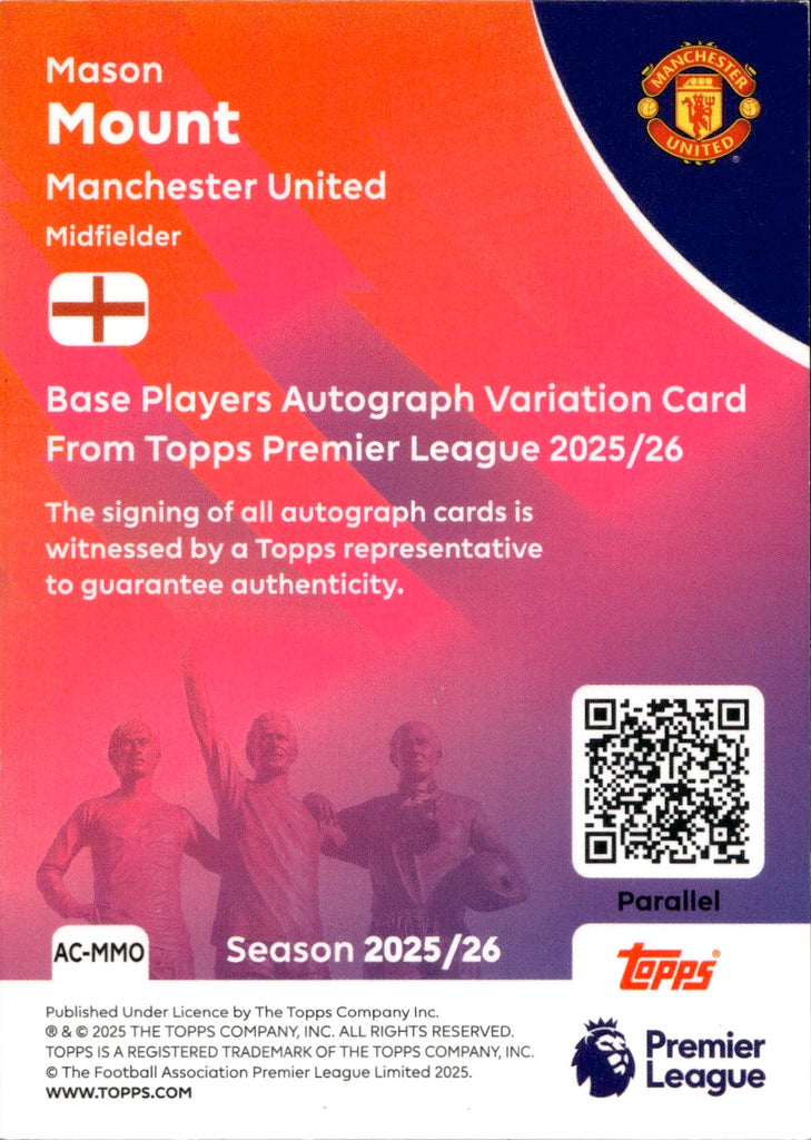 2025-26 Mason Mount Topps English Premier League ORANGE MINI-DIAMOND AUTO 13/25 AUTOGRAPH #AC-MMO Manchester United