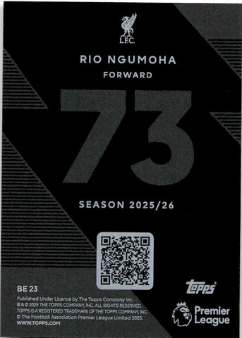 2025-26 Rio Ngumoha Topps Premier League BLACK EDGE EDITION ROOKIE RC #BE23 Liverpool