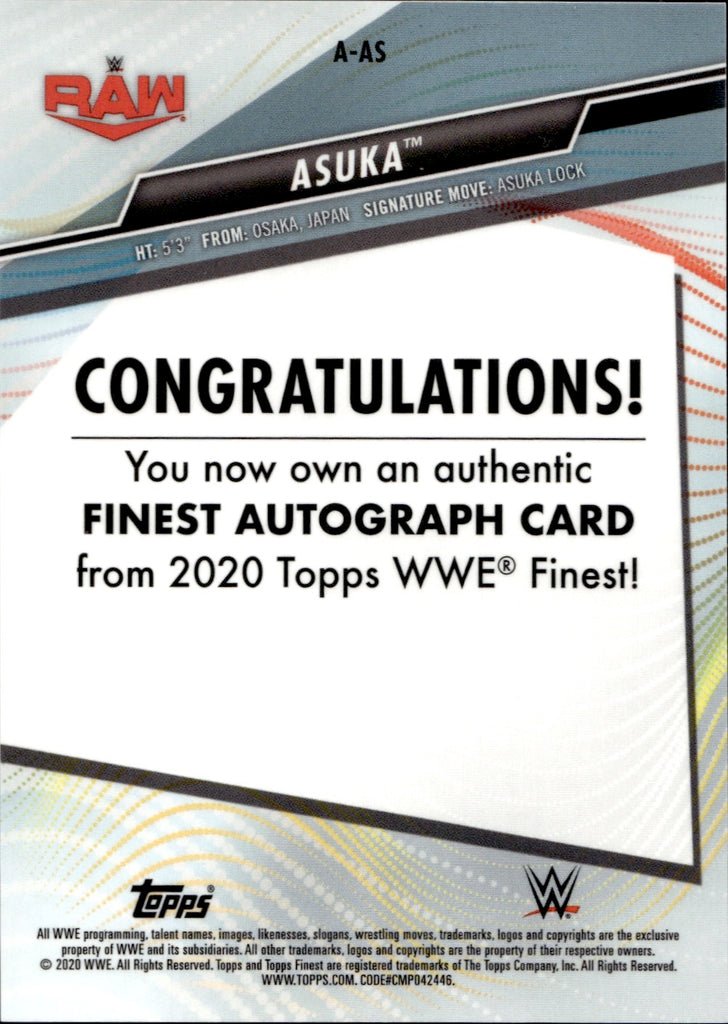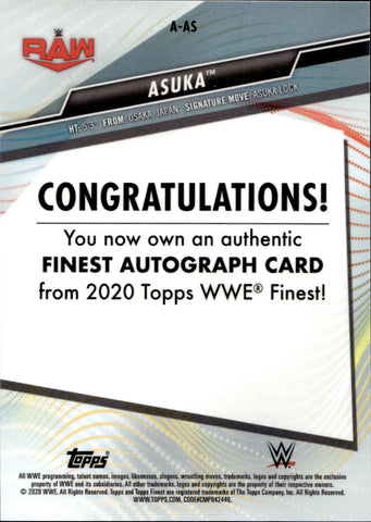 2020 Asuka Topps Finest REFRACTOR AUTO AUTOGRAPH #A-AS Monday Night Raw