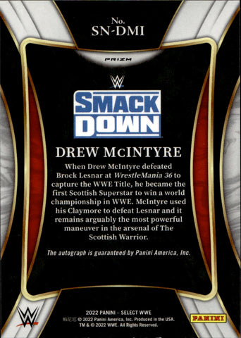 2022 Drew McIntyre Panini Select SIGNATURE SELECTIONS SHOCK AUTO AUTOGRAPH #SN-DMI Friday Night Smackdown