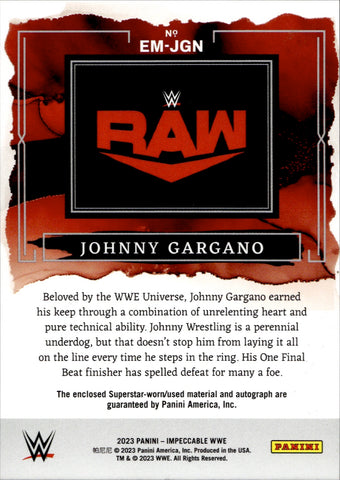 2023 Johnny Gargano Panini Impeccable WWE ELEGANCE SHIRT AUTO 14/75 AUTOGRAPH RELIC #EM-JGN Monday Night Raw