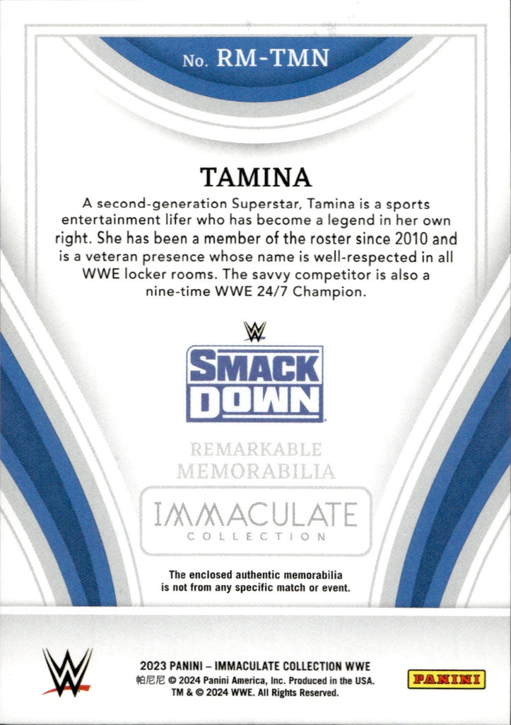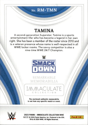 2023 Tamina Panini Immaculate WWE GOLD SHIRT 08/10 RELIC #RM-TMN Friday Night Smackdown