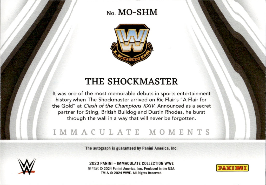 2023 The Shockmaster Panini Immaculate Collection WWE IMMACULATE MOMENTS AUTO 65/99 AUTOGRAPH #MO-SHM WWE Legend