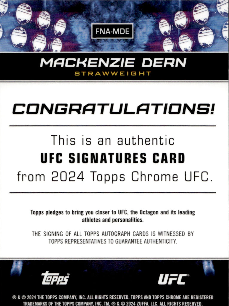 2024 Mackenzie Dern Topps Chrome UFC ORANGE REFRACTOR AUTO 01/25 AUTOGRAPH #FNA-MDE Strawweight