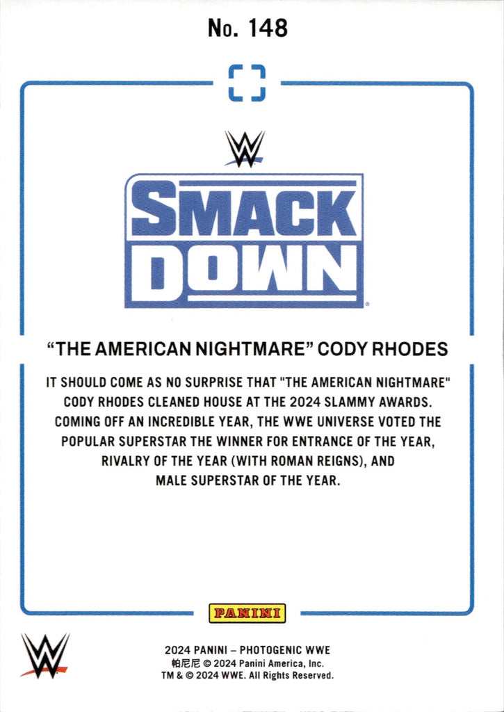 2024 "The American Nightmare" Cody Rhodes Panini Photogenic 28/99 #148 Friday Night Smackdown