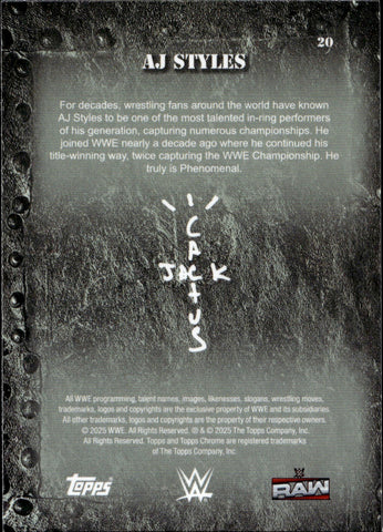 2025 A.J. Styles Topps Chrome Cactus Jack BLUE REFRACTOR 74/150 #20